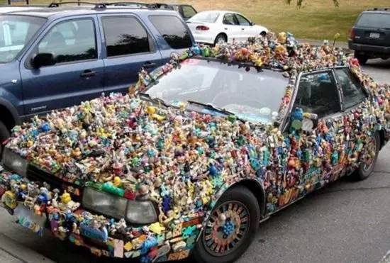 这是一辆神奇的轿车,显然是个童心未泯的车主。可是,你让密集恐惧症患者情何以堪!!