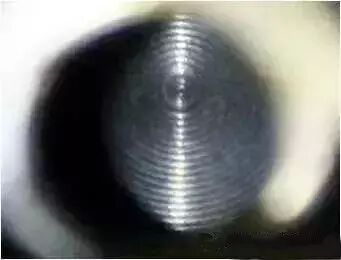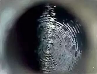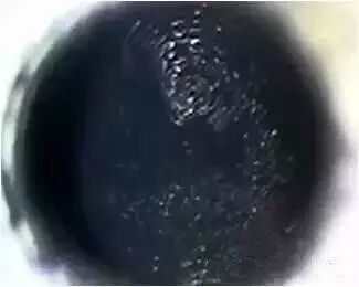 再次使用内视设备,我们看到,此时活塞上已经附着了厚厚的一层积碳。