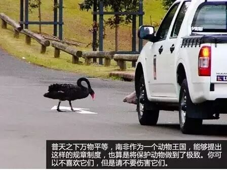 在南非公路上行驶的车辆必须给过街的动物让路,如果在牧人请求或示意的情况下不停车,司机会被处以高达535美元的罚款。