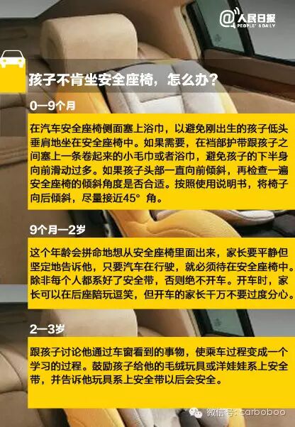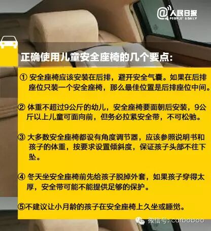 【下月起,我国儿童安全座椅将强制认证!】我国每年有将近两万名14岁以下儿童死于交通事故。全球销售的儿童安全座椅中,六成是“中国制造”,但中国人自己使用的比例却只有1%。目前,儿童安全座椅已纳入国家强制性产品认证目录,9月1日起实施。再次提醒:孩子乘车要坐安全座椅!正确使用方法↓↓扩散!