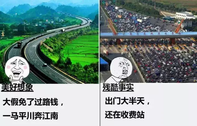 现实:挤在马路上整整两个小时都没下高速。