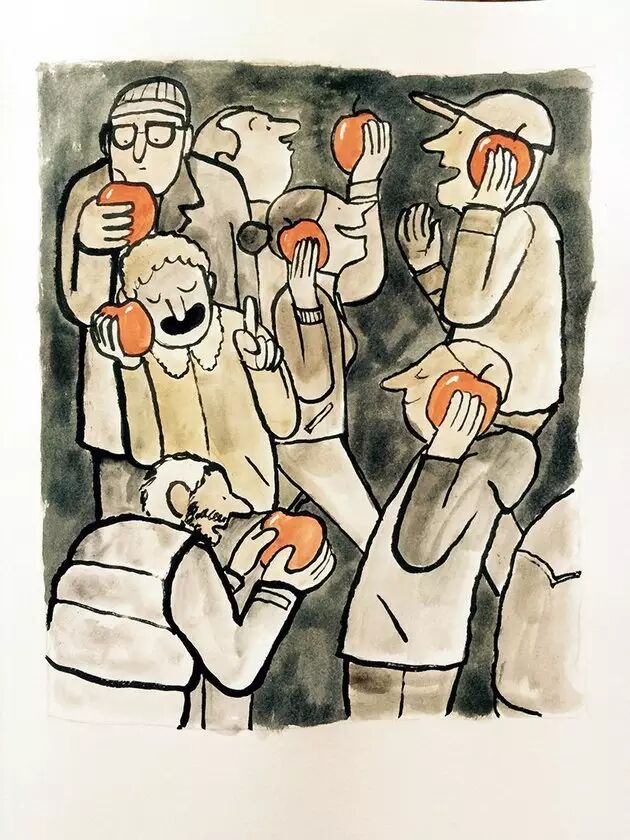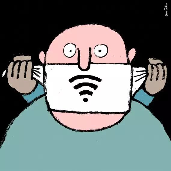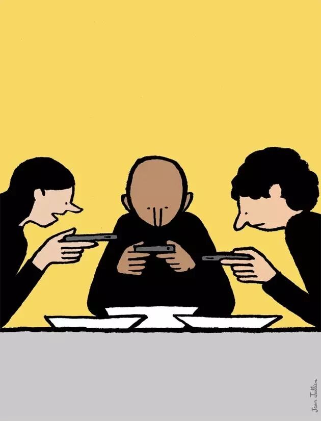 法国艺术家Jean Jullien 想必也深受其害,他特别绘制了一组插画讽刺这事儿。看完觉得,想找个人,不带手机,就聊聊天。