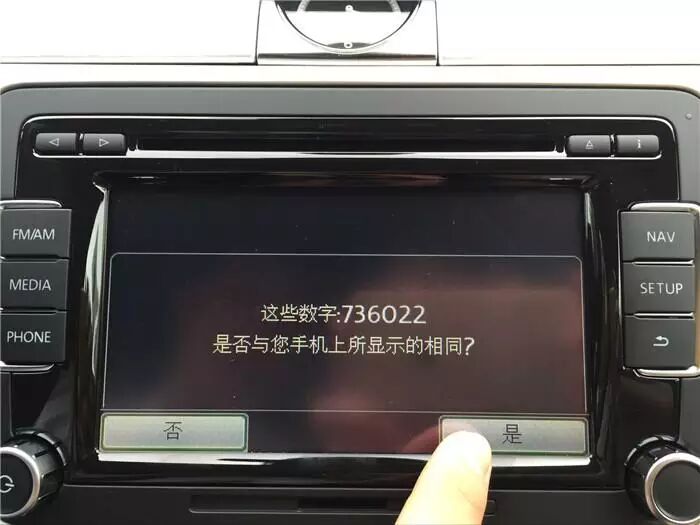 根据手机上弹出的对话框,CC的中控屏幕上也会显示出一个相应的信息,点击“是”就可以了。