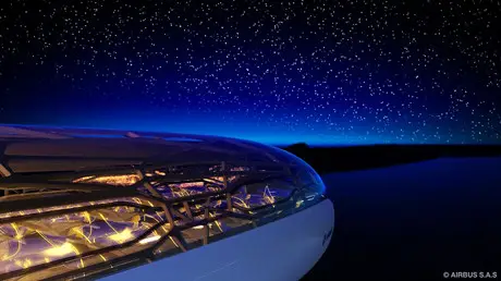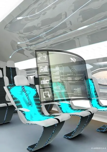 与此同时,空客自己也打算研发透明客机。他们的方案是让飞机透明一半,以及更加的未来范:
