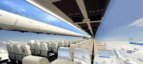 客机将运用OLED(Organic Light-Emitting Diode,有机发光二极管,就诺贝尔奖那个啦)技术于机身上,不仅让乘客可以一览窗外风光,甚至能变成触摸屏,满满高科技。