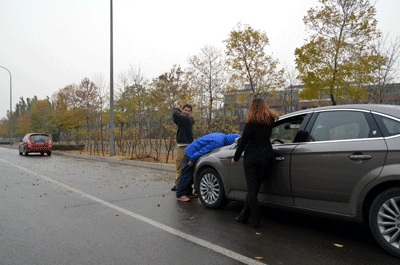 这种碰瓷需要冒着生命危险来制造,碰瓷者一般都寻找车速不快的车子,然后突然从某个角落蹿出,直接冲到你的车子上。当你还没有反应过来,就已经围上来4、5个人,上来敲你窗户,说你撞人…然后就是一笔讹诈..