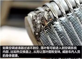当冬天打开暖风的时候感觉从出风口出来的风有异味,这时您需要首先检查一下空调滤清器上是否有落叶之类的污物。上面说了,落叶会飘得到处都是,如果恰巧落在空调外部进风口处那么就有可能被吸进空调外部进气道中。虽然落叶进入空调外部进气道,但会被空调滤清器首先阻挡,因此当落叶长时间在空调滤清器表面停留,并且温度、湿度合适的话,落叶便会腐败变质,从而污染空调滤清器并产生异味。