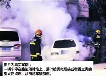 树叶落地一段时间后就会变得干燥,如果车停在这些干枯的落叶堆上就很可能被落叶引燃。为什么会引燃?原因很简单,落叶被烟头之类的火源点燃后就很容易导致车辆被引燃烧毁。