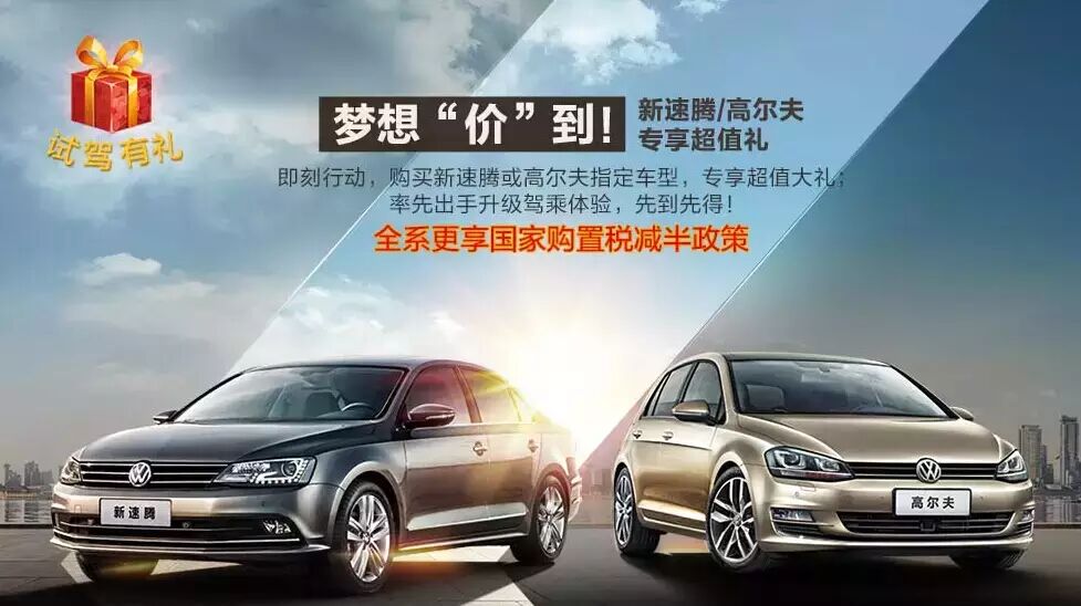 是梦想“价”到,更是机“惠”来到!即刻入手迈腾、新速腾、高尔夫三款指定车型即享升级舒适人性化科技,体验从心开始。