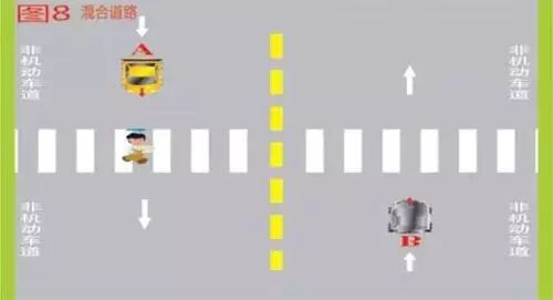 8、行人在机动车、非机动车混合通行道路的人行横道行走,机动车A未停车让行的,属于违法行为,应当处罚。机动车B可在确保安全的前提下,通过人行横道。