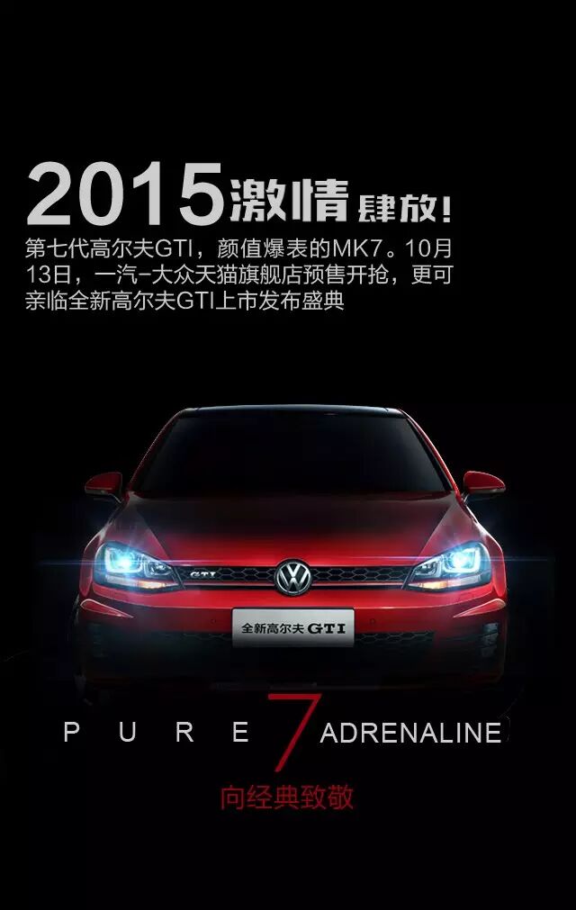 11月4日全新高尔夫GTI激情来袭!天猫抢先预售现已开启,多重G情豪礼等你来!