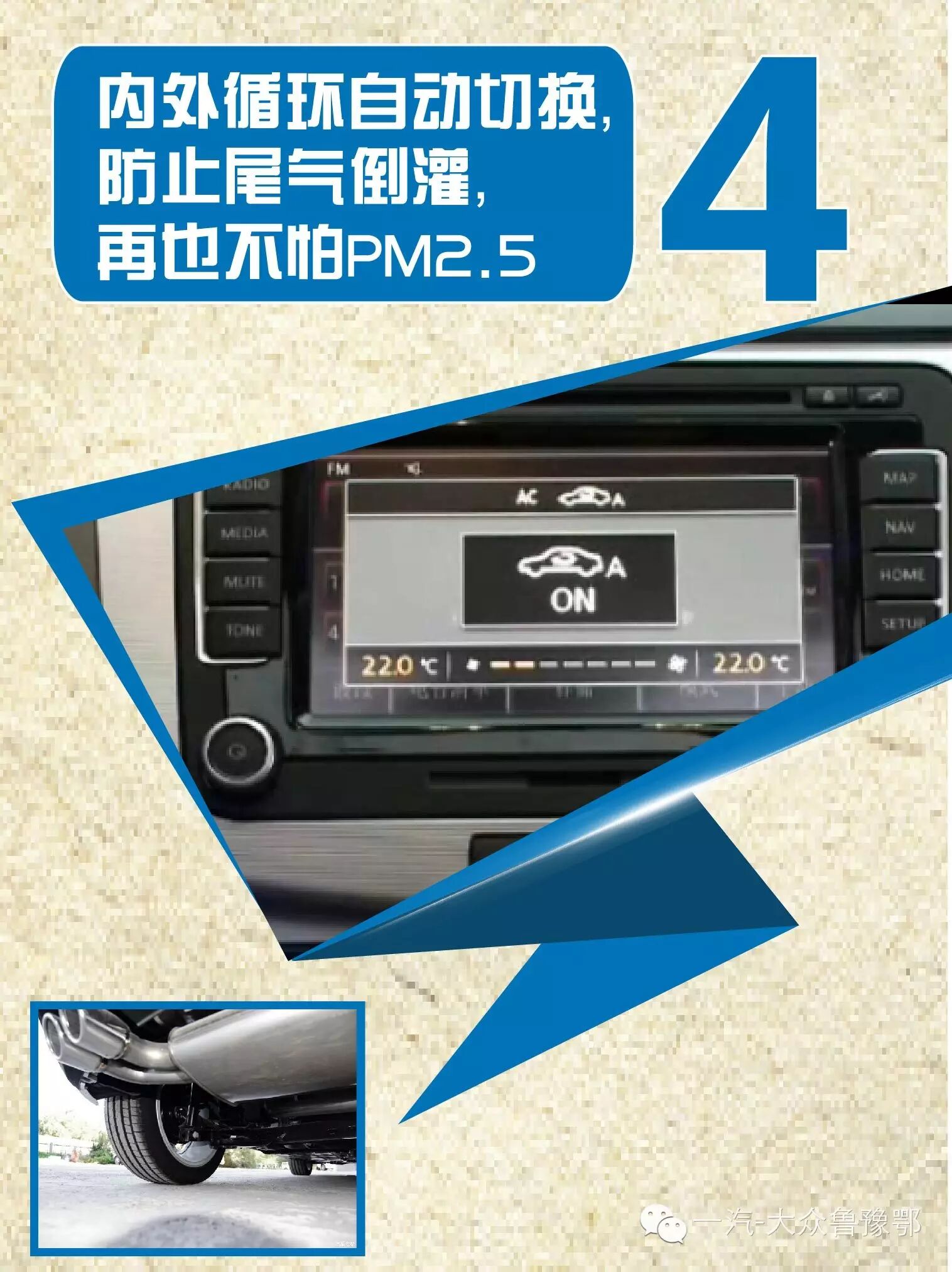 众所周知,长时间的内循环和外循环都对乘客有影响,大众特有的自动内外循环模式,根据车内和车外的空气质量,自动切换,还可防止倒车时尾气倒灌,呵护到家。