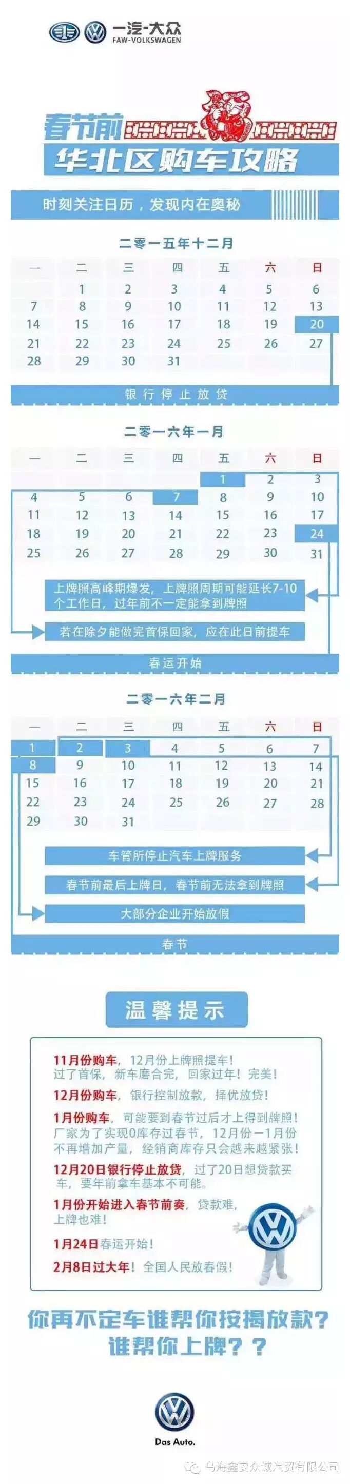 出大事了!再不买车就晚了?不信,看图说话!!!另乌海鑫安众诚一汽-大众4S店年末特惠季,价格钜惠,质量信得过,服务更周到,先买先得,当然最重要的优惠、优惠、很优惠!买一汽-大众就到乌海鑫安众诚一汽-大众4S店!