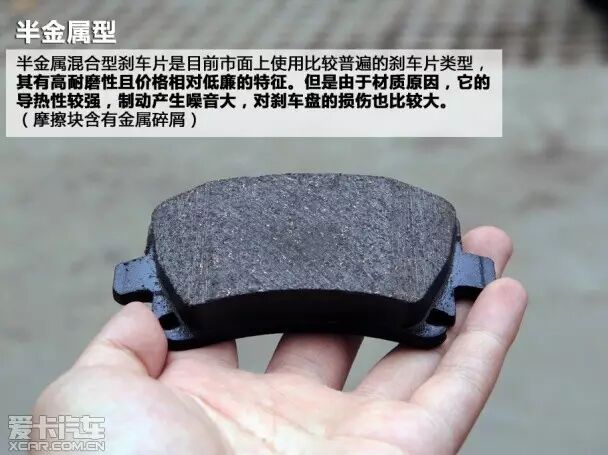 半金属混合型刹车片凭借其不高的价格且耐用的特点被广泛应用在汽车上,它的温控能力强,能够承受更高的制动温度。不过由于其采用半金属混合材质导热性很强,摩擦产生的温度最终会传递到刹车油路上,导致刹车油液沸腾降低制动效果。同时,由于材质原因,半金属刹车片在制动时的噪音会比较大,而且对刹车盘的损伤较大。