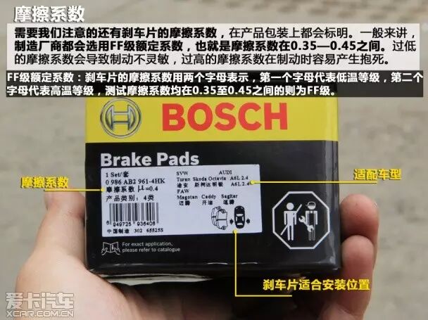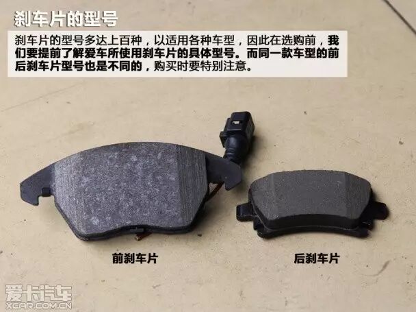 根据车型的不同,使用哪种型号的刹车片也是有所区别的,而同辆车型的前后刹车片型号也是不同的,这就需要我们在自行购买刹车片时提前了解爱车刹车片型号。而在购买刹车片时也要谨防购买伪劣产品,市场中的刹车片良莠不齐,真假难辨,需要您具有很强的辨别真假的能力。