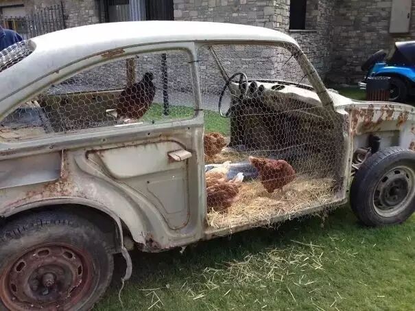 旧车还能用来养鸡哦~