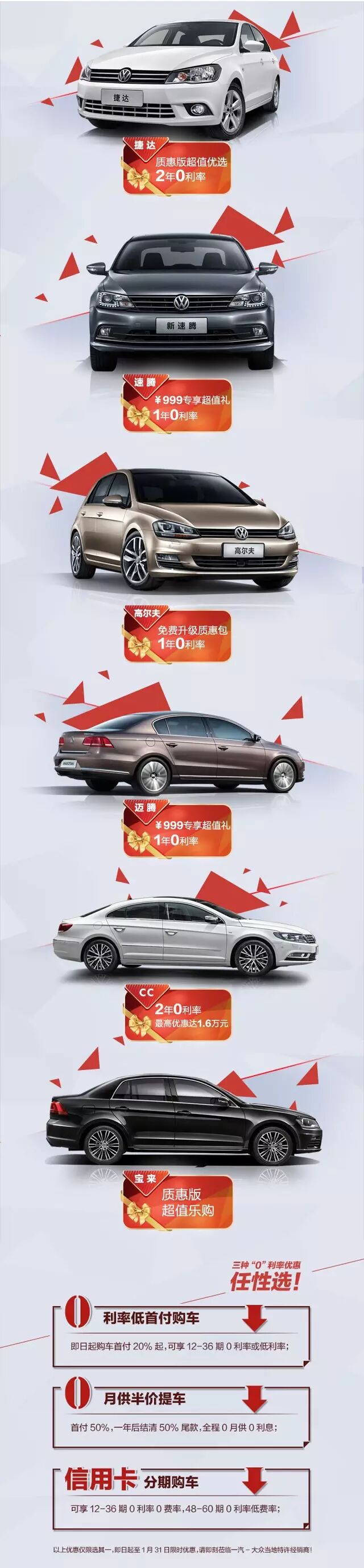 速腾 999元享超值礼1年0利率