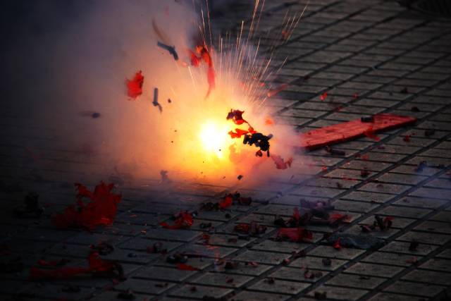 烟花炮竹喜庆吉祥,窗花剪影幸福美满。