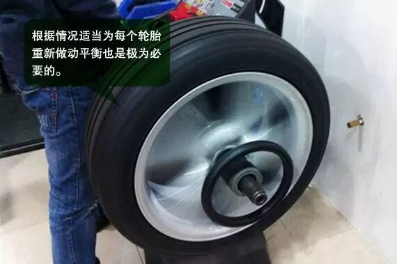 根据情况适当为每个轮胎重新做动平衡也是极为必要的,轮胎动平衡失效的原因既可能是轮毂变形、轮胎磨损的不平衡,也可能是在强烈的颠簸中,将夹在轮毂上的平衡块震掉了。