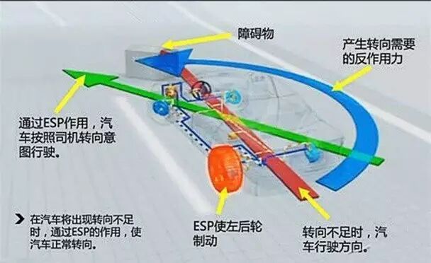 ESP的英文全称是Electronic Stability Program,中文翻译为电子稳定程序,包含ABS及ASR等,是这两种主要系统功能上的延伸。因此,ESP称得上是当前汽车防滑装置的最高级形式。