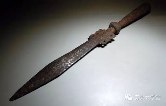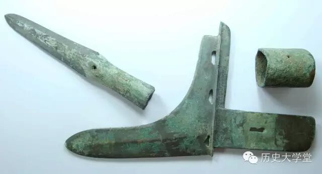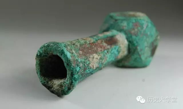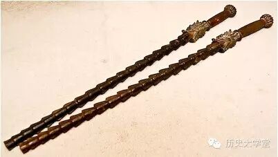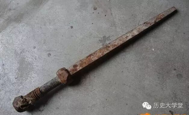殳,殳的金属首多为青铜制,可分有尖锋的实战用“锐殳”和无尖锋的仪仗用“晋殳”两类。殳主要用于车战,在两军车马交错冲撞时使其分开,故有棱而无刃。