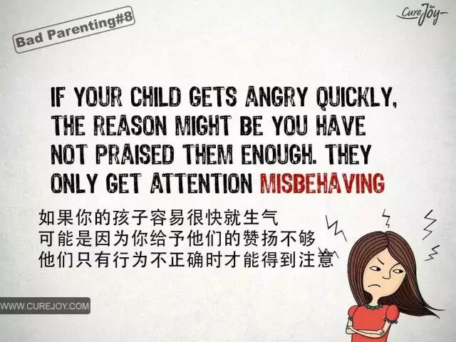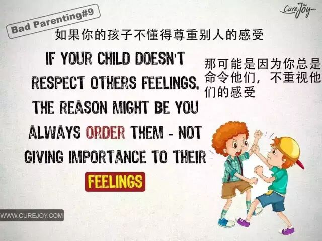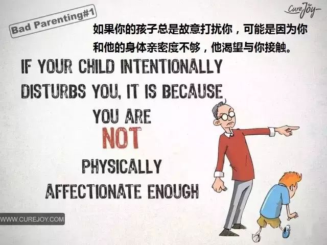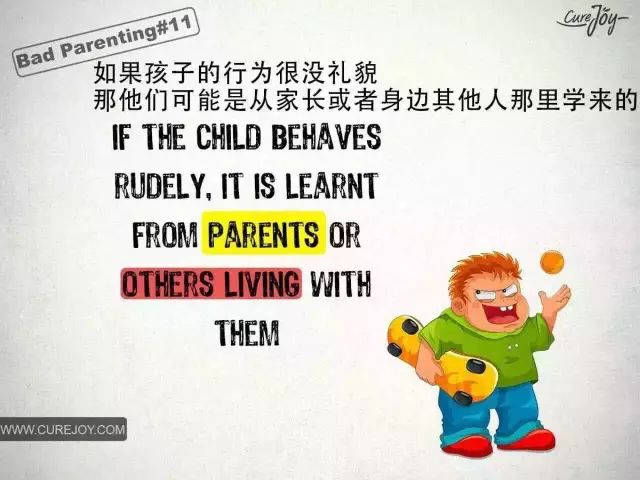 看看这组来自CureJoy的漫画,它告诉我们,孩子成长中出现的问题几乎都是家长不良教育方法产生的结果。正如有句名言所说“每瞬间,你看到孩子,也就看到了自己,你教育孩子,也是在教育自己,并检验自己的人格。”希望这样深刻的对比,能引起爸爸妈妈们对自己教育行为的审视。