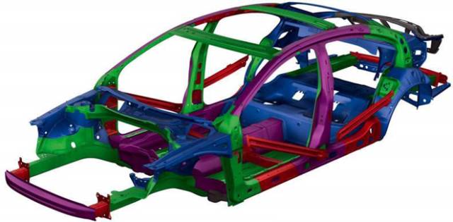 热成型钢板:将钢板经过950°C的高温加热之后一次成型,然后迅速冷却,从而全面提高了钢板强度。这种钢板的屈服强度可达1300Mpa——1600Mpa,是普通钢材的三到四倍,每平方厘米可承受10吨以上的压力,硬度仅次于陶瓷,但又具备了钢材的韧性。将这种热成型钢板利用在车身上,可将车辆的整体承受力提高30%,在欧洲NCAP碰撞测试中达到五星标准。目前,热成型钢材主要应用于前防撞钢梁、A柱、B柱以及底部重要通道等关键部位。在发生撞击时,可有效减少驾驶舱变形,保护驾乘人员的安全。一汽-大众的CC、迈腾、速腾、高尔夫等车型均在关键部位采用了热成型钢板。