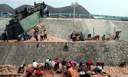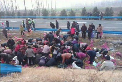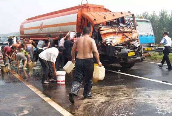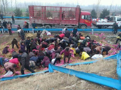 司机还在呻吟,可是无人救援,只顾抢拿几十块钱的东西。