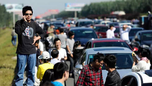 然后路上堵成这样