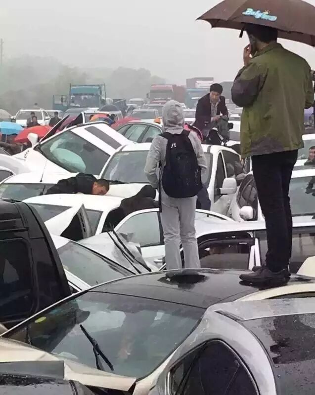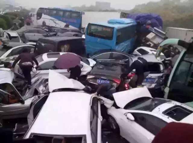 据各大媒体报道,车祸起因系两辆货车相撞,横在高速公路上。由于事发当时路段大雾弥漫,雨天路滑,导致后方车辆未能及时刹车,撞上货车,紧接着就是大客车、试驾小轿车等多辆汽车连环接踵相撞。