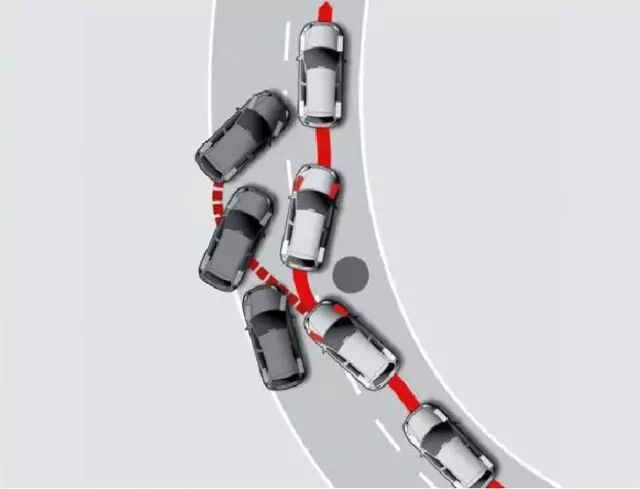 驾驶员进行紧急制动并急打方向盘,车辆趋于转向不足的状态,此时ESP制动内侧后轮,产生偏转力矩,弥补转向不足。躲避障碍物后驾驶员紧急回舵,车辆趋于转向过度状态,此时ESP会制动外侧前轮,抑制转向过度。