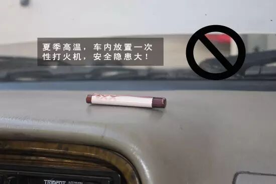 一次性打火机。打火机中气体受热会膨胀,塑料壳体会因受热而发生爆炸,一旦与车内一些油料、易燃物靠近就会引发燃烧。