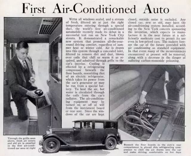 由于最初汽车没有密封的车身,如何控制车“内”的温度似乎并不是件值得工程师们操心的事情:冬天,人们只需穿厚重一些;夏天,20多公里的时速也可以为人们带来一丝凉意。当汽车开始安装封闭车身时,实在难以忍受闷热的人们依然考虑的是如何通过通风来降低温度——比如在车地板上挖几个洞。