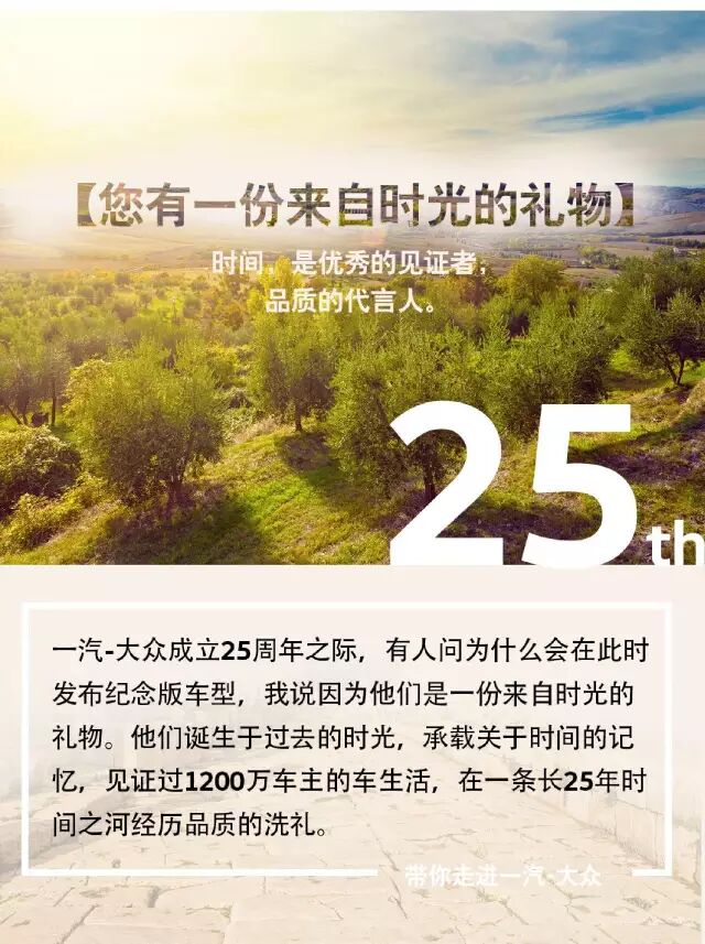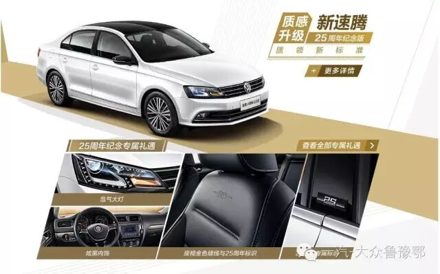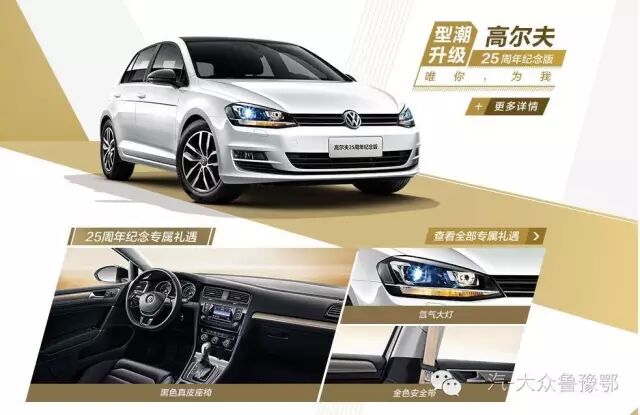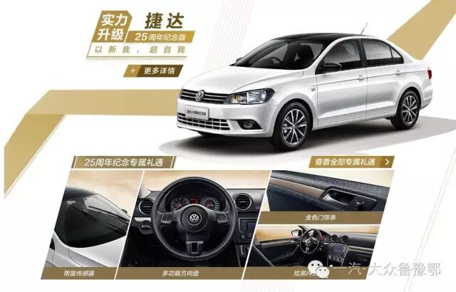 一汽-大众大众品牌全系“25周年纪念版”车型限量上市,捷达、宝来、速腾、高尔夫、迈腾、CC六大车型集体推出25周年纪念版车型,不仅加装多项25周年专属标识,更增加了大量超值装备,在为用户打造独特的身份标签的同时,更带来超值性价比。