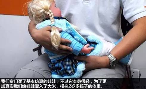 实验过程是大人用自己系安全带,然后怀抱孩子经历急刹车的过程。为了模拟更加真实,我们使用的是体内灌入了大约8公斤大米的娃娃,这个重量接近于2岁多孩子的体重。下面看看用与不用儿童安全座椅的实际效果是怎样的吧。