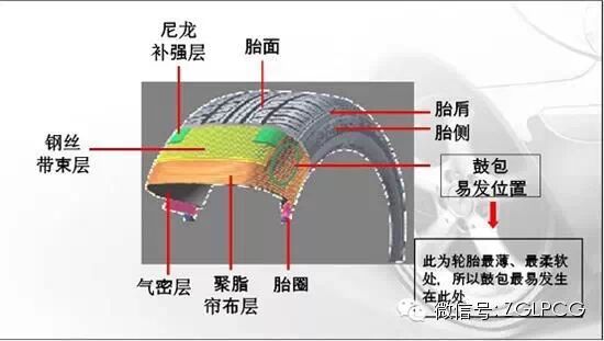 马上就要夏天了!你的爱车轮胎检查了吗?鼓包是轮胎损坏中最多见的现象,引起鼓包的原因有很多,一般来说,轮胎鼓包现象的发生绝大部分是因为使用中遭遇不测的激烈冲击。大家看一下轮胎结构你就会明白咯!