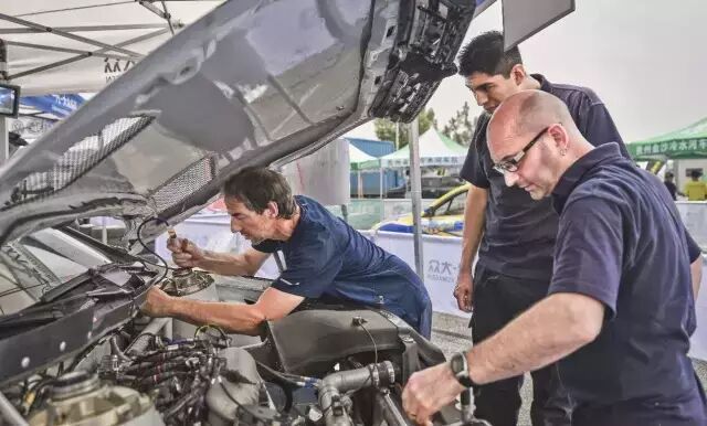 现场维修区始终是一派忙碌的景象,工作人员兢兢业业始终战斗在自己的岗位上,身上的机油和脸颊上得一抹黑灰,赛车人的魅力超乎你的想象。