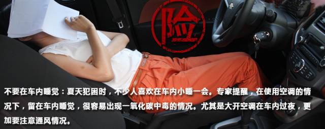 夏天的时候,有人喜欢开着空调在车里睡觉。专家提醒,即使在室外,在车内开着空调睡觉,特别是几个人一起时更要当心,应将车窗留一条两三厘米宽的缝隙,且每小时通一次风。