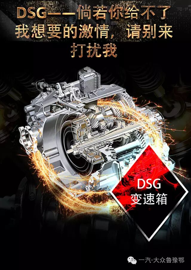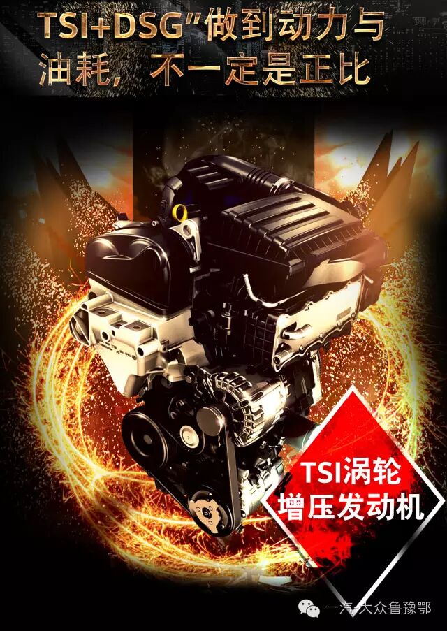 有一种力量,它潜藏澎湃,初时波澜不惊,却又在刹那间震撼爆发。 TSI发动机结合了直喷和增压技术,在发动机宽转速范围实现最大扭矩输出,带来持续饱满的强劲动力,其出色的燃油经济性更是使得驾驶者在享受更富动感的驾驶时不再以高油耗为代价。举个栗子,覆盖一汽-大众全车系的1.4TSI涡轮增压发动机等同于2.0L的自然吸气发动机,2.0的动力,1.4的油耗,这可以说是每一位车主想要追求的鱼和熊掌兼得。有没有一种可能,令急速的前行也有如流水般顺畅而优雅?有一种力量,它驭动随心,行遍天空海阔,让前路始终一片坦途。作为动力总成的一部分,变速箱对于车辆的动力性能、油耗及排放,同样起着至关重要的作用。大众汽车独特的DSG变速箱技术给驾驶者带来更加平稳、迅速的换挡过程、更多的驾驶乐趣以及更低的燃油消耗。更佳动力表现——在换档过程中,DSG双离合自动变速箱总是保持有一组齿轮在输出动力,不会出现动力传递的间断。 更快换挡响应——快捷的换档速度、极短的换档时间使DSG变速箱能够马上产生有效的牵引力和更大的灵活性。更佳驾乘舒适性——不间断的动力输出使换档过程更加平顺,驾驶者完全感觉不到顿挫感,提高了车辆的驾乘舒适性。更多驾驶乐趣——快速的齿轮转换使DSG双离合自动变速箱提速更快,配合TSI发动机低转速下的大扭矩输出,速度感极为明显,更具有驾驶乐趣。更低燃油消耗——微小的液压功耗损失和极短的换档时间使DSG变速箱的效率更高,油耗更低。更少废气排放——DSG变速箱与相同排量传统6速自动档车型相比,与之匹配的TSI发动机废气排放量可再降低5-10%,排放更加清洁,环保性能更佳.