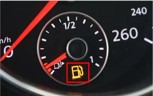 在油表盘上有一个油量指示灯,如果此灯亮了,那就是油量存货不多了。灯亮之后,一般的汽车至少能够再开上20公里,不同的车型能够坚持的公里数不同,大家对自己的爱车都应提前了解清楚。算好时间里程加油,以免影响行程。如若真遇到万一的情况,油表亮了,一路上还没有遇到加油站,汽车油量耗尽时,一般驾驶就会有顿挫感,感觉汽车向前一冲一冲的,最后就熄火不能启动了。