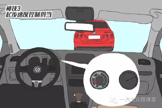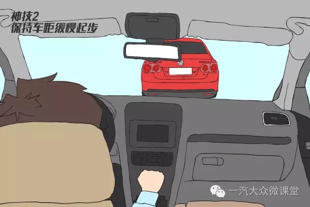 起步不要过快过猛,跟车不要太近。自动挡的朋友们,也千万不要着急踩油门。