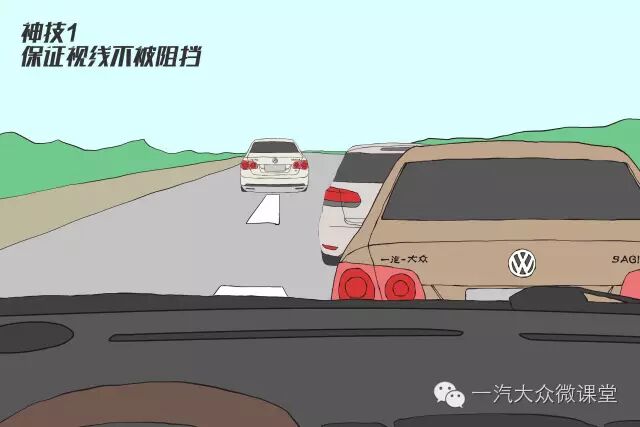 堵车时,自己的视线尽量不要被前面的车完全阻挡,尽可能与前车在左方向上错开一点,使自己能看到前方四五辆车。
