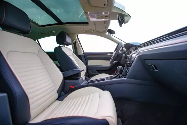 迈腾全新的内饰设计,黑白拼接皮质座椅,