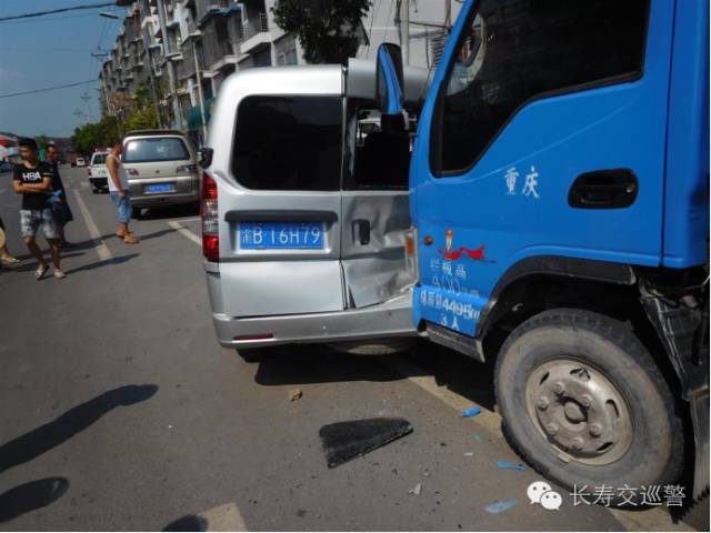 闷热中午,公路上车辆行人稀少。长寿区葛兰正街突然传来“砰!砰!”两声闷响,但见一辆白色小轿车突然撞上一辆停放在路边的银色小型面包车,并在强大的冲击力之下致使该面包车与停放在路边的蓝色轻型仓栅式货车碰撞,“腹背受敌”的面包车瞬间严重“毁容”,首尾受创,其余两车也“身负重伤”。