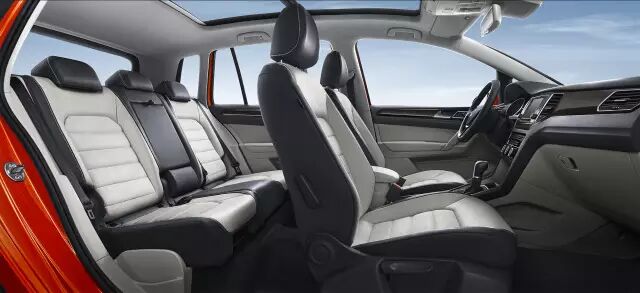 由于轴距和后悬均做了加长,全新高尔夫·嘉旅的后排空间有极大的提升,前后座椅臀点之间的最大距离从865mm增至898mm。从实用性上来讲,这33mm的意义是巨大的,如果3只恐龙鸟同时坐在后排,也不会感到丝毫不适。