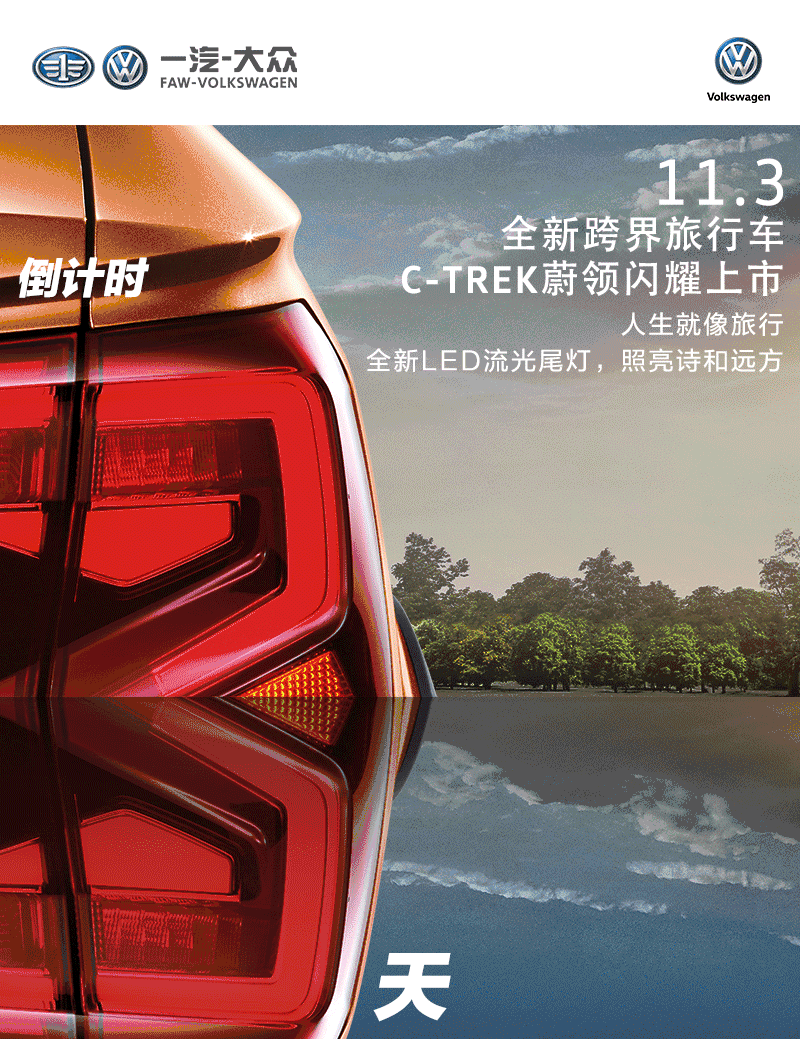 C-TREK蔚领是一款风格完全不同于一汽-大众现有车型的全新车型。作为一汽-大众首款A级跨界旅行车,它不仅拥有轿车的舒适操控性,还具备了旅行车的易载大空间和堪比SUV的通过性。配备强劲性能的发动机,随时释放澎湃动力。作为一汽-大众的首款跨界旅行车,C-TREK蔚领注定改变当前家用车和旅行车的格局。