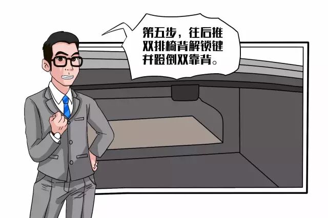 当双排椅背解锁后,可以顺势蹬倒双靠背,如果没有一次性蹬倒,可试着多蹬几次。