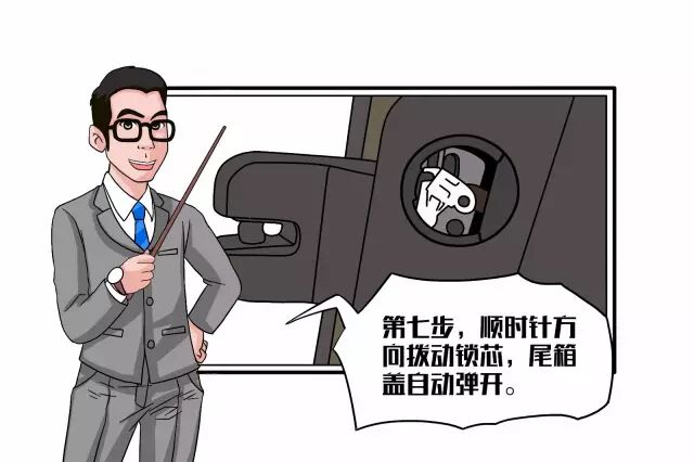 拨动锁芯时不要着急,一定要顺时针方向开启,只有方向正确尾箱盖才能自动弹开。