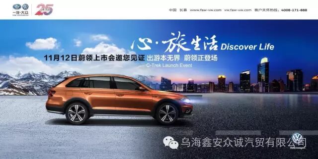 现在,蔚领已经登陆一汽大众乌海市鑫安众诚汽贸有限公司,新车已到店,感兴趣的朋友不妨前来赏车试驾。11月12日更有“心·旅 生活-全新跨界旅行车蔚领惊艳上市”活动期待您的到来!