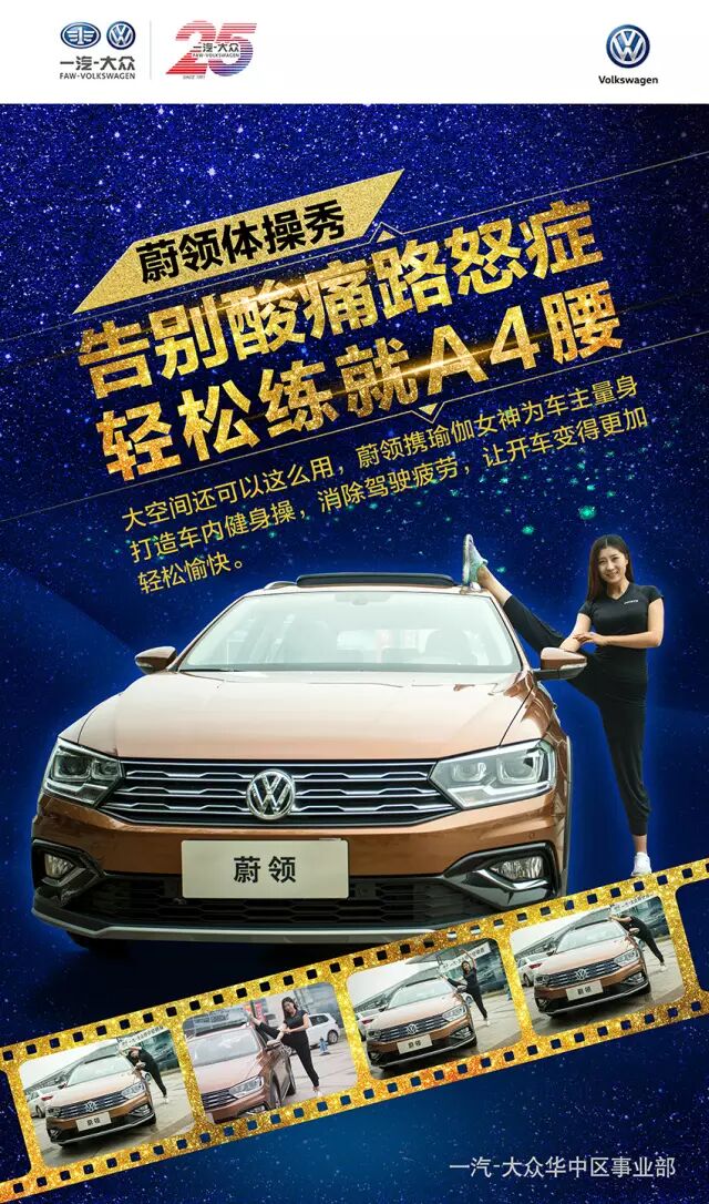 蔚领体操秀今天,一汽-大众蔚领携专业瑜伽老师,为车主朋友们量身打造了一套适合在车内完成的健身操动作,在你遭遇堵车,或停好车感觉身体酸痛时,都可以试试这些动作,达到消除驾驶疲劳,伸展肌肉,放松关节的效果。